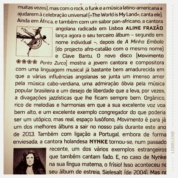 Image Recensão ao “Movimento” de Aline Frazão, no Blitz/julho 2013 Share this: Click to share on X (Opens in new window) X Click to share on Facebook (Opens in new window) Facebook More Click to share on WhatsApp (Opens in new window) WhatsApp Click to email a link to a friend (Opens in new window) Email Click to share on Telegram (Opens in new window) Telegram Like Loading... Related